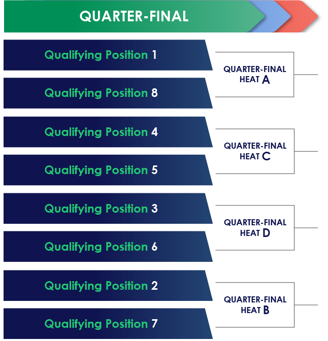 - 予選順位はタイム順で決定し、決勝トーナメント準々決勝の対戦カードが確定