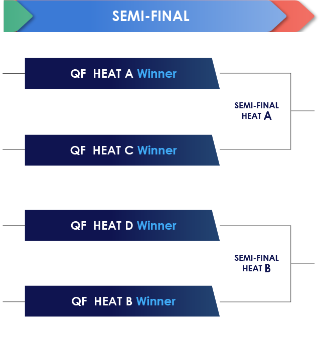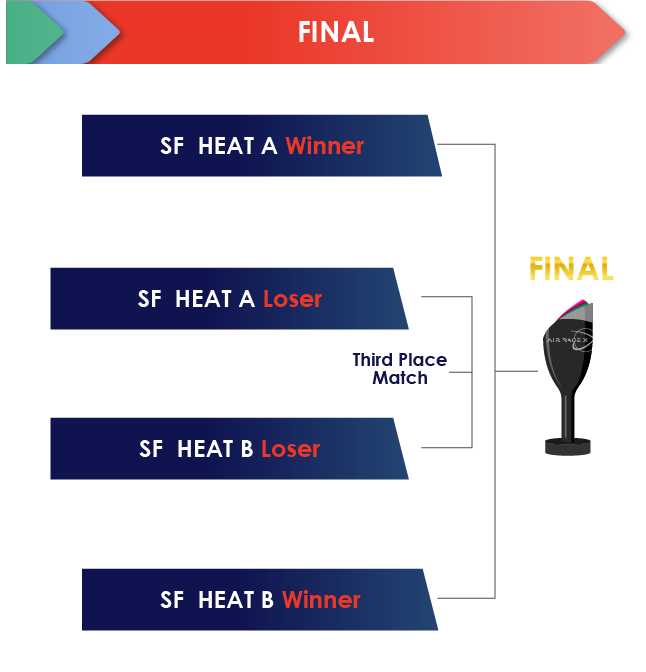 - 各ラウンド1対1のノックアウト方式(準々決勝 → 準決勝 → 決勝、3位決定戦)