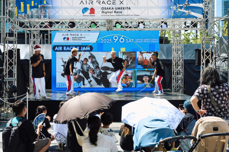 西日本初公開となる本物のエアレース機の展示に加え、Z世代アーティスト(茉ひる・下北姫菜・NOCO)による音楽ライブ、REG☆STYLE率いるダブルダッチ&ストリートスポーツ「AIR RACE X JAM」、親子向けワークショップなど多彩なコンテンツを展開。家族連れから若年層まで幅広い層が楽しめる都市型イベントとなりました。