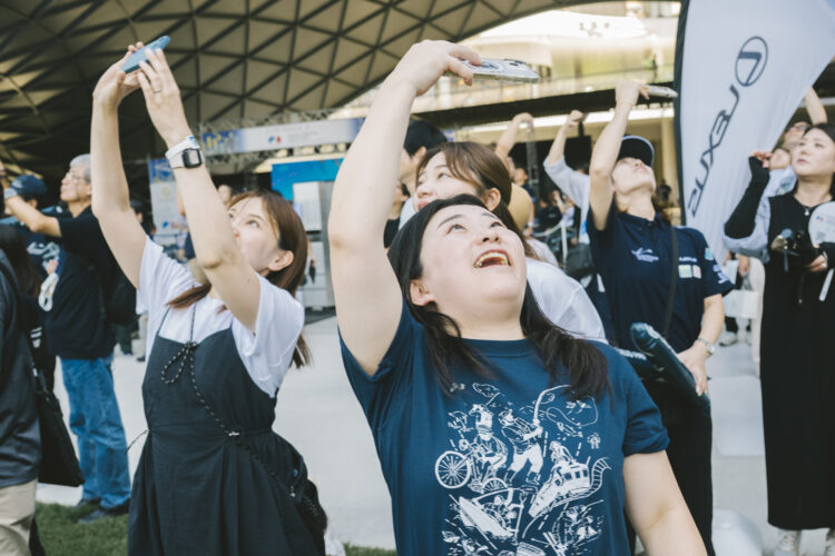 最高時速400kmで駆け抜けるレース機の姿に、観客は釘付け。両会場の観戦エリアには多くの人々が集まり、次世代の観戦スタイルを体感しました。